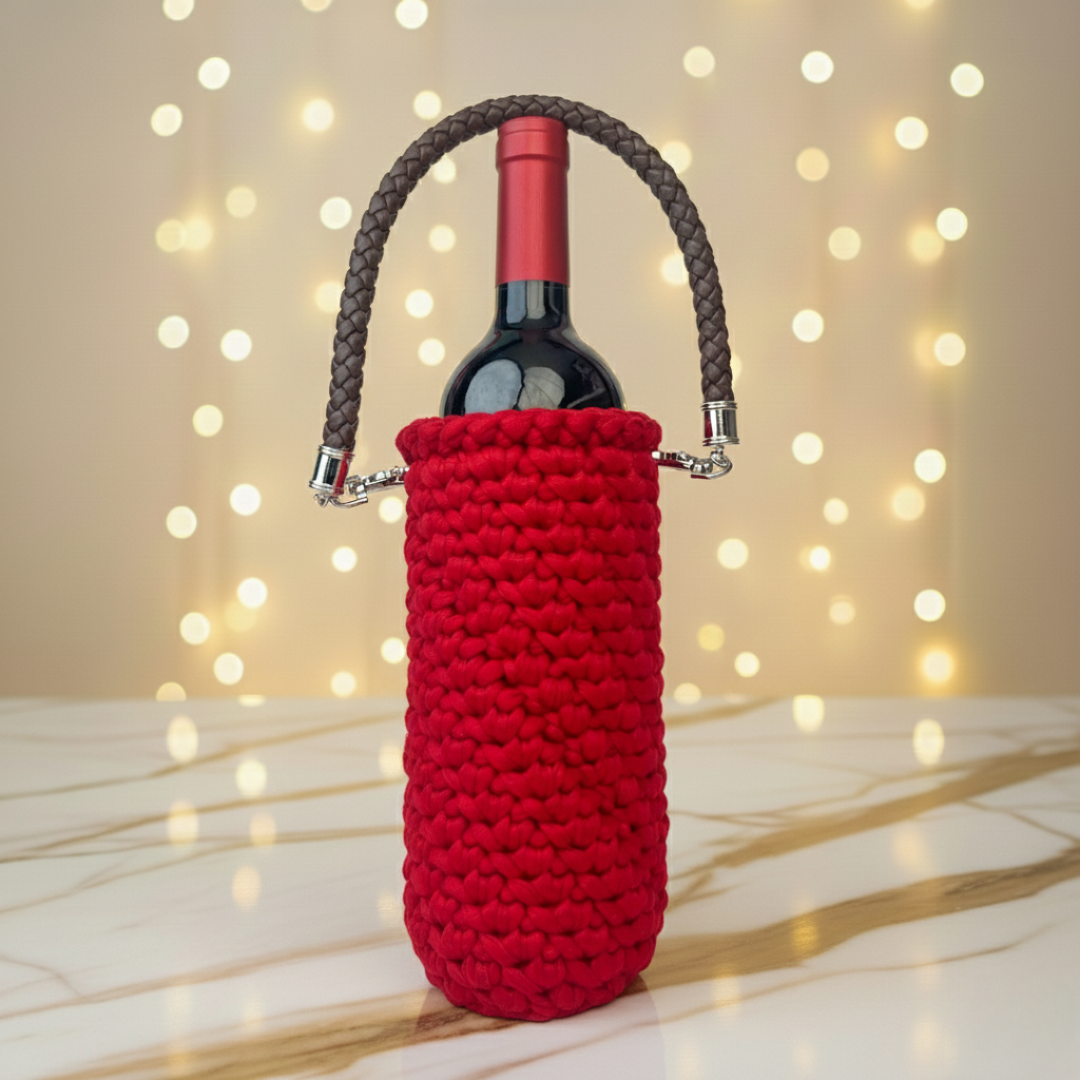 Elegante, ligero y tejido a mano, este portavinos es el complemento perfecto para tus momentos especiales. Ahora incorpora una correa de vinipiel con bandola, que aporta mayor resistencia, comodidad y un toque moderno al diseño tradicional. Ideal para llevar tu botella favorita con estilo y practicidad, convirtiendo cada brindis en una experiencia aún más especial.