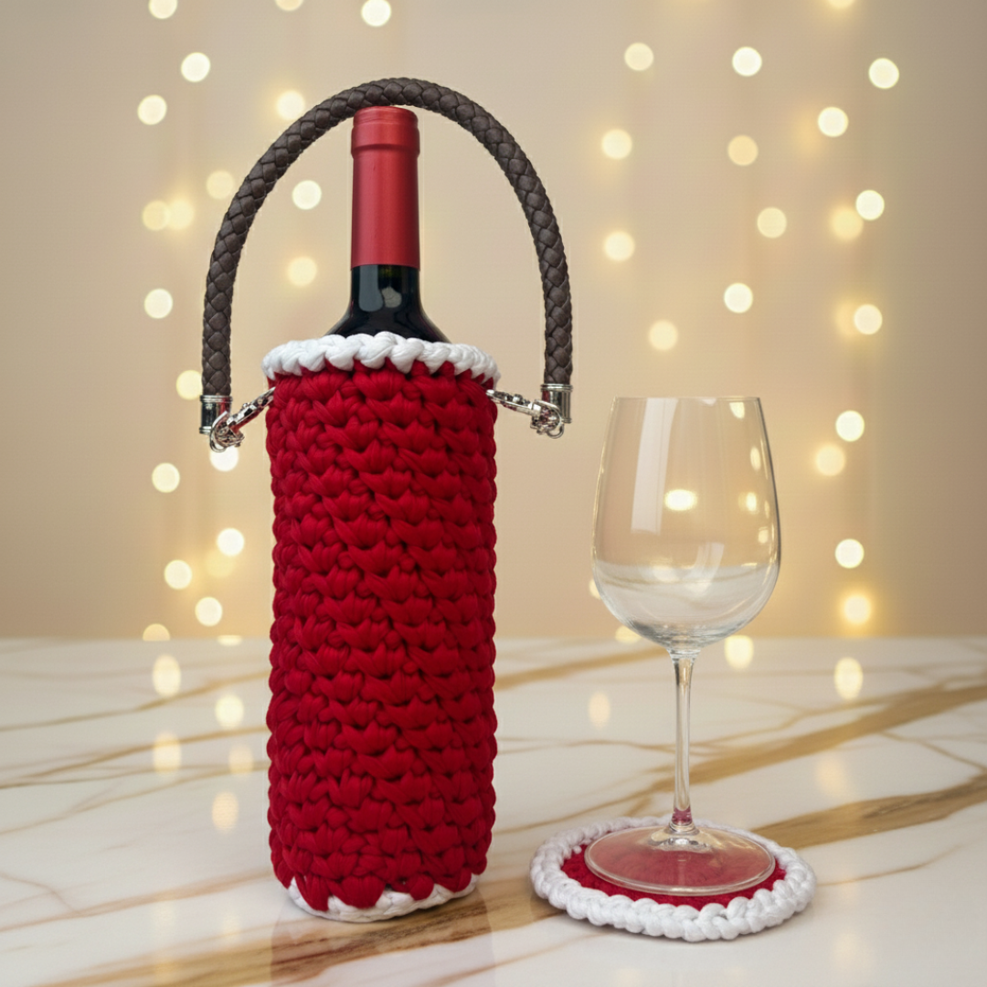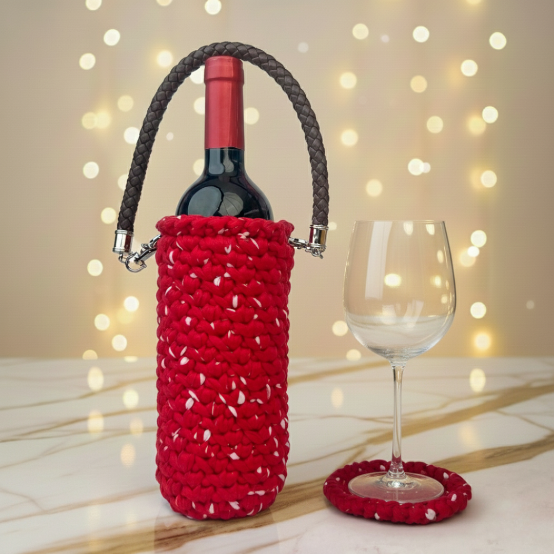 ✨ Portavinos Tejido con Correa de Vinipiel ✨